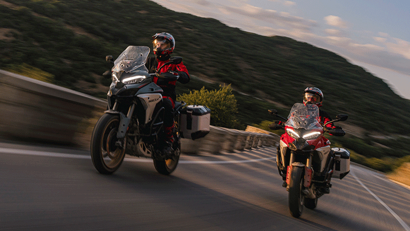 Ducati’s radar-assisted safety suite now includes Forward Collision Warning, joining Adaptive Cruise Control and Blind Spot Detection. A larger 280mm rear disc and refined linked braking system enhance stopping power and comfort when riding two-up.