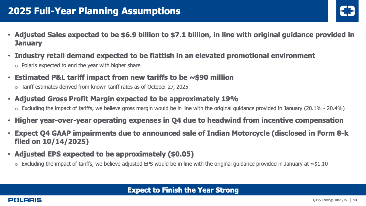 Polaris reinstated full-year guidance, projecting adjusted sales of $6.9–$7.1 billion.
