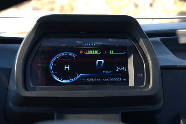 RanchHawk also offers a color TFT instrumentation behind a tilt-adjustable steering wheel, plus a 10-inch TFT infotainment screen — which doubles as a back-up camera — is on the center console and links up via Bluetooth to deliver a standard audio system, along with GPS mapping and YouTube streaming. The windshield pivots at adjustable angles and can be folded down for an open-air experience.