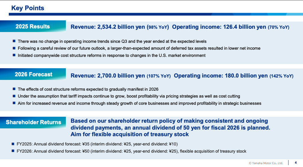 Despite continued tariff exposure, Yamaha is forecasting higher revenue and profits in fiscal 2026.