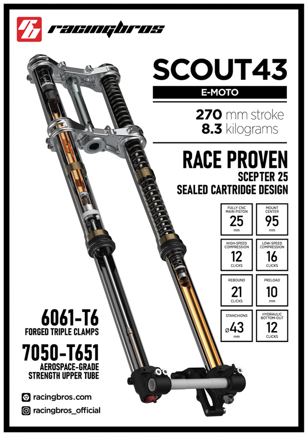 Performance Machine’s Race Series Monobloc Caliper promises increased rigidity and improved stopping power. Progressive Suspension’s 944 Series Shocks with Quik Preload System simplify preload adjustments for touring riders. Rekluse’s APEX Manual Clutch, RacingBros’ SCOUT 43 fork for the Surron Ultra Bee, and Ikon Suspension’s vintage VMX shocks round out the performance segment.