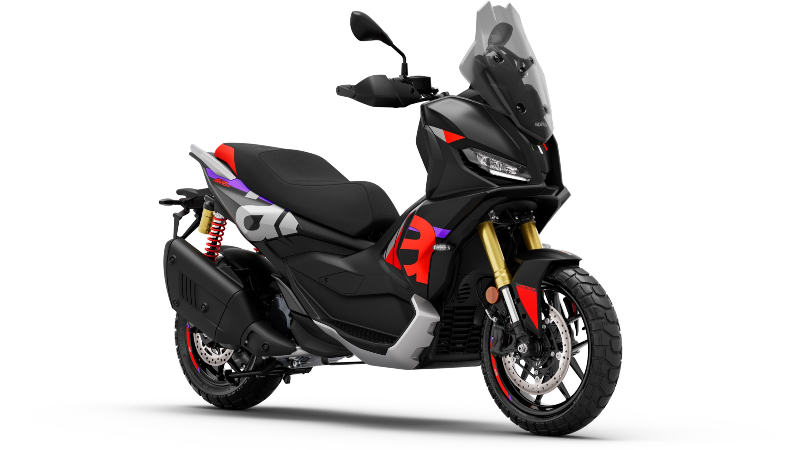 SR GT 400 – A new mid-size GT scooter built for both city use and light adventure. The SR GT 400 features long-travel suspension with a motorcycle-style fork, deeper-tread tires, a class-leading weight-to-power ratio (36 hp, 186 kg/410 lbs), a 5-inch TFT display, keyless ignition, traction control and ABS. An adjustable windscreen and generous underseat storage broaden its commuting and touring appeal.