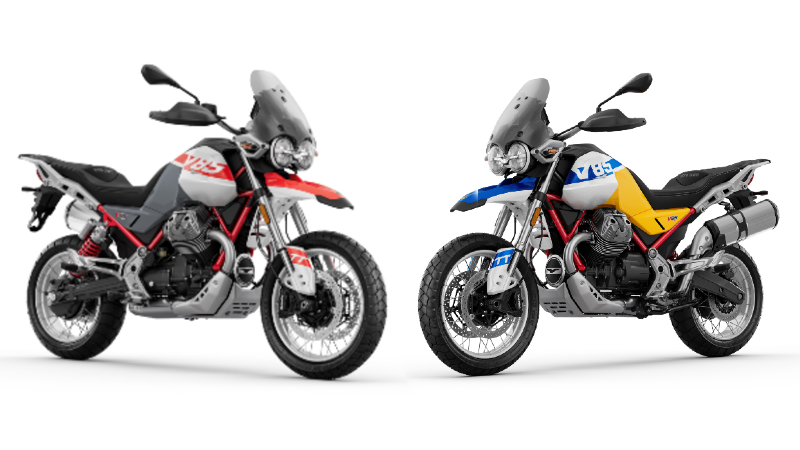 - V85 range: New colors for the Strada, TT and TT Travel, including Verde Legnano, Rosso Monza, Giallo Wadi, Grigio Yanar Dag and Blu Zefiro.
