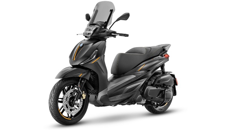Piaggio is marking the 25th anniversary of the Beverly high-wheel scooter with a special-edition model available with 310 hpe and 400 hpe engines (North America will receive the BV 400 S). The model features a matte Grigio 25th Anniversary finish, smoked flyscreen, black and gold accents, and a dedicated commemorative badge.