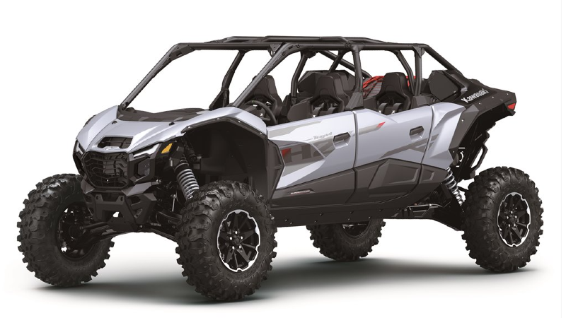 At the top end of the performance spectrum, Kawasaki is introducing new color options for its supercharged Teryx 4 H2 and Teryx 5 H2 Deluxe eS models, reinforcing the brand’s commitment to high-horsepower sport side-by-sides. Both models are powered by a 999cc supercharged in-line four-cylinder engine producing a claimed 250 horsepower and feature a CVT, electronically selectable 2WD/4WD with front differential lock, adjustable power modes and long-travel suspension.