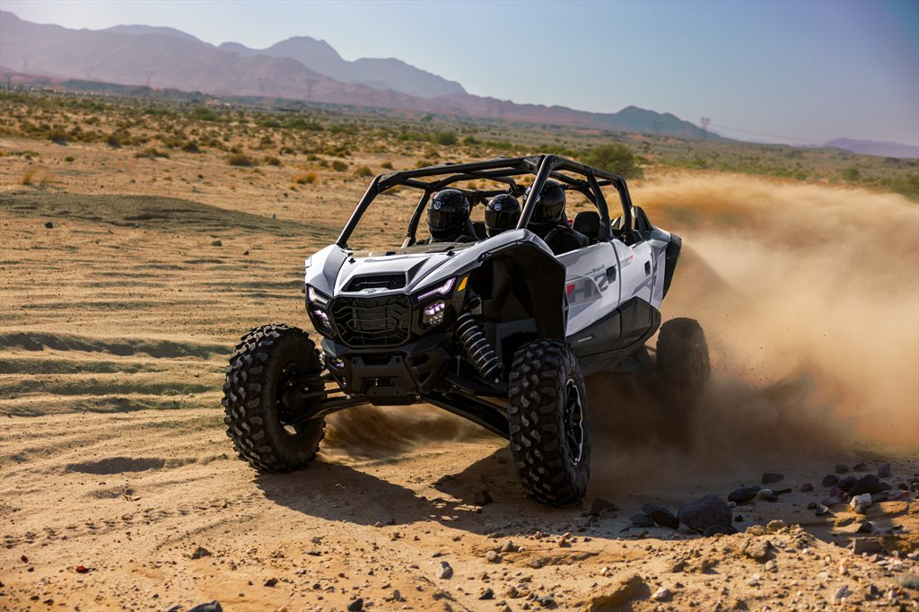At the top end of the performance spectrum, Kawasaki is introducing new color options for its supercharged Teryx 4 H2 and Teryx 5 H2 Deluxe eS models, reinforcing the brand’s commitment to high-horsepower sport side-by-sides. Both models are powered by a 999cc supercharged in-line four-cylinder engine producing a claimed 250 horsepower and feature a CVT, electronically selectable 2WD/4WD with front differential lock, adjustable power modes and long-travel suspension.
